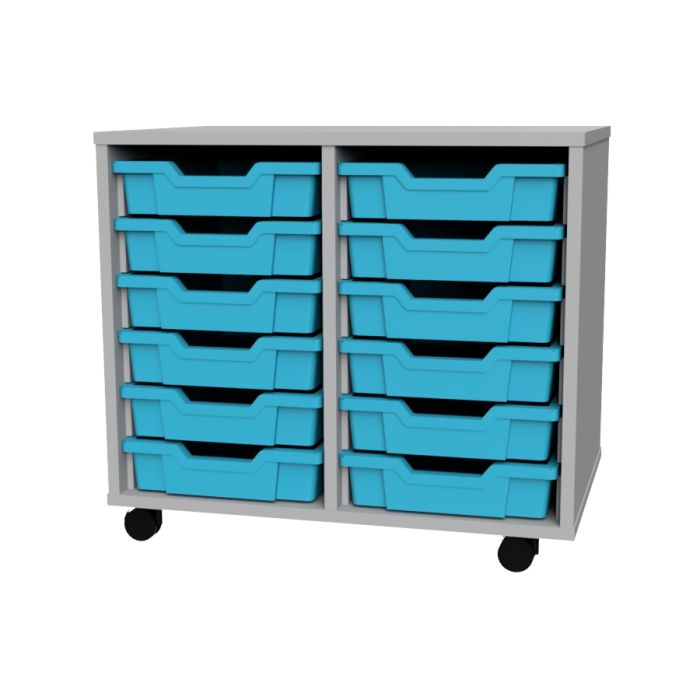 These versatile tray units are great for all round classroom storage and are fully mobile so can easily be moved around the classroom or to another room. With a choice of finish. Construction mobile units made from 18mm MDF including an 8mm MDF back with locking castors. All units are supplied with gratnell's trays. H615 x W690 x D460mm.