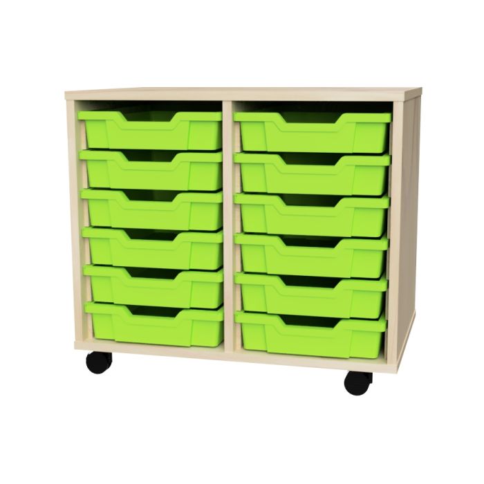 These versatile tray units are great for all round classroom storage and are fully mobile so can easily be moved around the classroom or to another room. With a choice of finish. Construction mobile units made from 18mm MDF including an 8mm MDF back with locking castors. All units are supplied with gratnell's trays. H615 x W690 x D460mm.