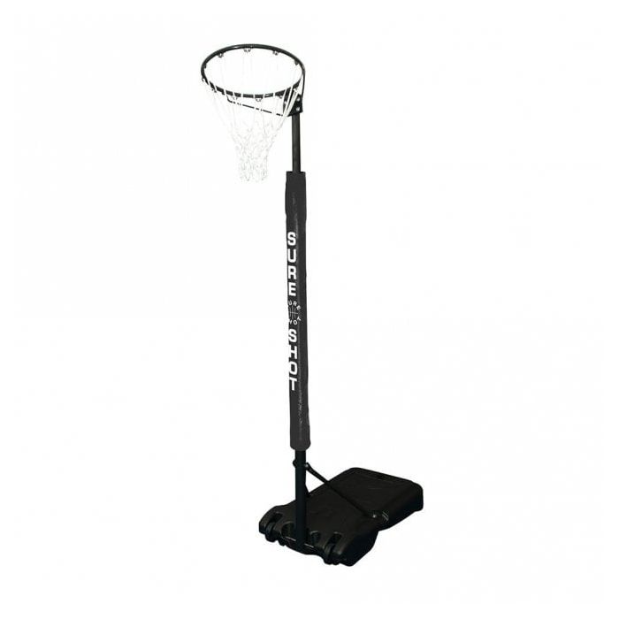 With a telescopic pole system - the unit can be adjusted to set the ring at any height between 5’ and 10’ (1.5m to 3.05m). The unit’s main pole section is split into 3 separate poles that each slide into each other to allow the height to be adjusted easily and safely. To adjust the height simply untighten the hand screws on two of the poles, slide the poles inside each other to set the ring to the desired height, and then re-tightening the hand screws. This adjustment must only be done by an adult. The model includes a 15” steel ring (38cm) with powder coating finish for durability and includes hooks for attaching the white nylon net. The model also includes pole padding for added safety when in use. The base includes a removeable ballast box that requires 26kg’s of sand or 14 litres of water to ensure maximum stability.