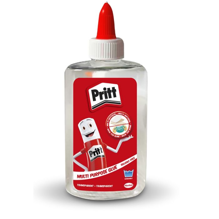 Pritt PVA Glue is multi-purpose clear glue that is washable and comes in an easy-to-use, recyclable bottle. This solvent-free glue can be used on paper, card, fabric and wood. Pritt PVA Glue is perfect for arts and crafts activities. 145ml bottle. Each.