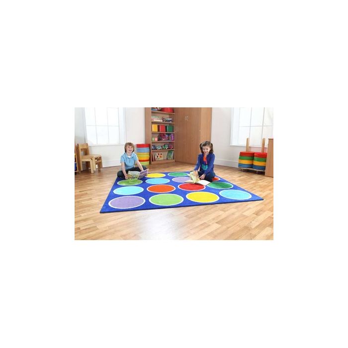 This highly colourful 2 x 2m placement carpet is great for reading areas or just a bright addition to the classroom or nursery environment. Features 16 placement spots. Heavy Duty Tuf-Pile - A substantial premium quality carpet, with an extra thick pile, soft textured tufted Nylon twist pile for comfort and longevity. 2000 x 2000mm. Delivery of this product will be to kerbside only. You will need to arrange for the product to be moved to its final location.