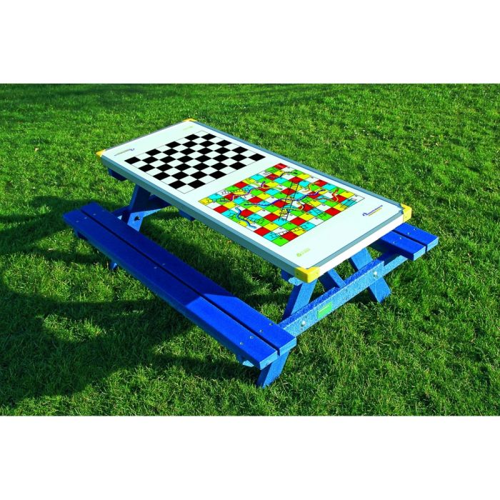 This amazing Recycled Plastic Heavy duty Picnic Bench with 2 games boards attached is suitable for any type of environment, and for children aged 4-7 years. Allowing for 2 games to be played at the same time, the games boards are 12mm deep and come without the play pieces. They have a 1 year guarantee.The Heavy Duty Picnic Bench can sit up to 6 people at any one time. Made from 100% recycled plastic, the product is maintenance free, sustainable, does not rot, corrode or splinter, and comes with a 25 year construction guarantee. There is no staining or varnishing required, and the product can be left outdoors all year round. Supplied with galvanised screws. Delivered Fully Assembled. Recyclable at the end of its life. Delivers high strength, is non-staining and long lasting. W1500 x D1100 x H610mm. SH360mm.