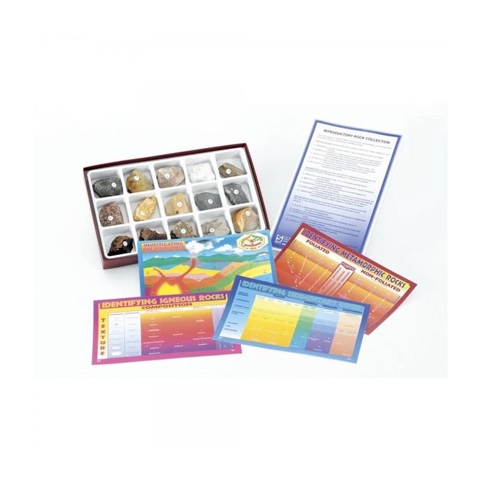 Everything you need to start studying rock types. Includes teaching resource and a primary presentation of the basic rock types. Includes five each of igneous, sedimentary and metamorphic rocks, totalling 15 specimens, approximately 37 x 37mm. Aimed at Key Stage 2 and 3.