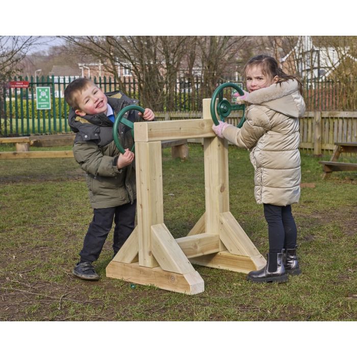 An innovative and interactive playground feature designed to spark imaginative play and collaborative fun. This engaging structure features a sturdy post with two steering wheels positioned on opposite sides, allowing multiple children to enjoy a thrilling driving experience together. Whether navigating imaginary roads, playing pretend games, or engaging in cooperative play, the Back Seat Driver offers an exciting and social play opportunity, encouraging creative expression and group interaction in outdoor spaces. L800 x D450 x H1000mm.