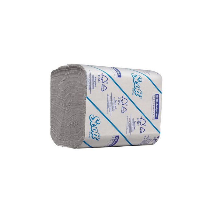 SCOTT Folded Toilet Tissue is softer, more absorbent and stronger than conventional tissue, providing consistent quality, at an affordable price. The folded design helps to prevent ripping when being pulled from the dispenser, and ensures only single sheets are dispensed each time, reducing mess and wastage. SCOTT toilet tissues are made from 100% recycled fibre and carry the European Ecolabel; your guarantee that they are manufactured responsibly at every step of the process. Also has FSC accreditation. This product is sold as a box of 36 packs x 250 white, 2 ply sheets (9,000 total). Individual sheet size 18.6cm (L) x 10.8cm (W). Product can be used with dispenser 06566185