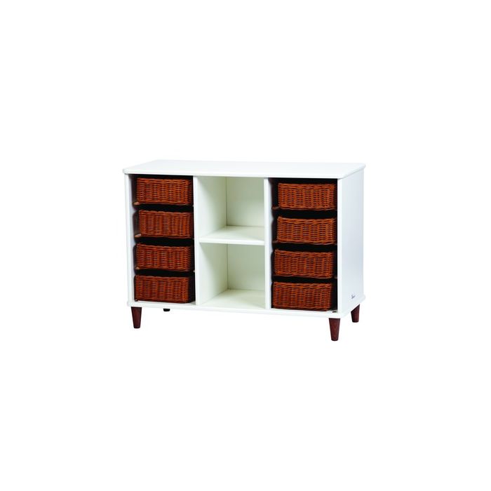 Freestanding storage unit with 2 x shelves and 8 shallow storage baskets for resources, toys and equipment. Manufactured in the UK from premium grade white melamine. Hard-wearing, scratch-resistant, easy-clean surface. Walnut wood finish legs. Fully assembled. 10 year guarantee. Dimensions W975 x D420 x H692mm. Delivery of this product will be to kerbside only. You will need to arrange for the product to be moved to its final location.