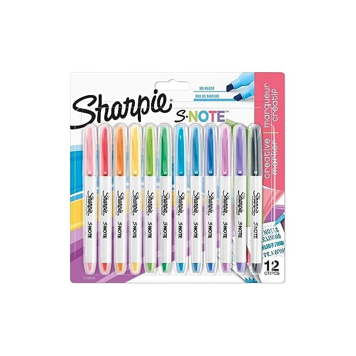 Chisel tip markers. Versatile highlighters in an array of bright, see-through pastel colours that make your work stand out. The versatile tip lets you quickly switch between precise and broad lines. Coloured cap for quick and easy identification. Assorted Colours. Pack of 12.