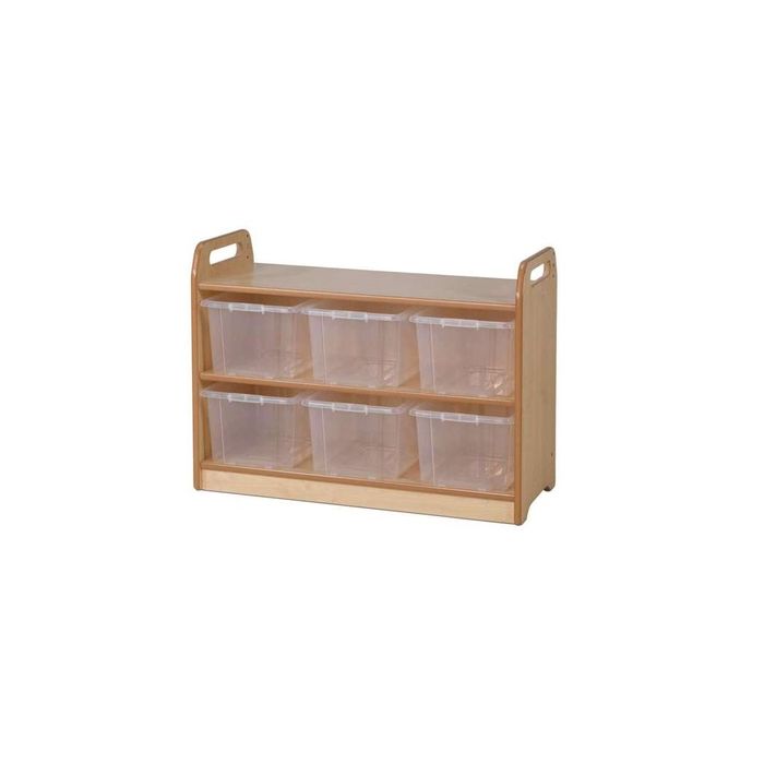 Storage unit with 6 clear tubs manufactured in the UK from premium grade maple melamine. Velcro display surface on reverse. Supplied fully assembled with a 10 year manufacturer's warranty. W900 x D400 x H660mm - Top shelf: H560mm. Delivery of this product will be to kerbside only. You will need to arrange for the product to be moved to its final location.