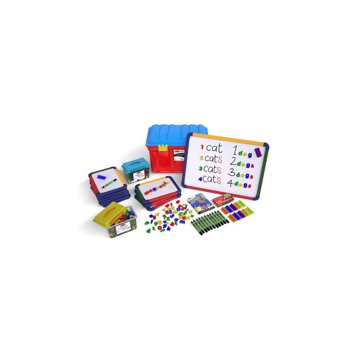 Teacher and pupil pack of magnets and magnetic boards from Show-me. Ideal for Primary School or Early Years classrooms, and presented in a multi-coloured storage trunk. Trunk includes: 10 x A4 magnetic drywipe boards, 1 x A3 magnetic drywipe board, 12 x medium tip drywipe markers, 12 x magnetic mini erasers, 286 x colourful letter magnets and 286 x vibrant number and symbol magnets. Every set also comes with a whiteboard care and maintenance guide/ poster.