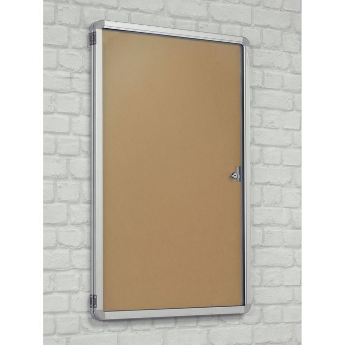 Noticeboard core and bonded textile are fire retardant as a composite, meeting Class 0 when assessed to BS 476 Parts 6 and 7, and comply with Class B-s1, d0 when tested to BS-EN13501-1: 2002. The clear plastic doors are tested separately and conform to Class 1Y when assessed to BS 476 Part 7. Satin silver anodised aluminium frame with rounded safety corners. Top hinged models have stays to hold doors open and can only be used landscape. Suitable for pins and staples with wall fixings included. Supplied with a 2-year manufacturer's warranty. Delivery of this product will be to kerbside only. You will need to arrange for the product to be moved to its final location.