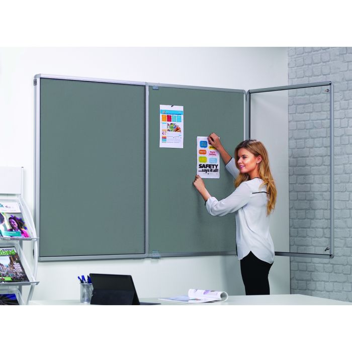 Noticeboard core and bonded textile are fire retardant as a composite, meeting Class 0 when assessed to BS 476 Parts 6 and 7, and comply with Class B-s1, d0 when tested to BS-EN13501-1: 2002. The clear plastic doors are tested separately and conform to Class 1Y when assessed to BS 476 Part 7. Satin silver anodised aluminium frame with rounded safety corners. Top hinged models have stays to hold doors open and can only be used landscape. Suitable for pins and staples with wall fixings included. Supplied with a 2-year manufacturer's warranty. Delivery of this product will be to kerbside only. You will need to arrange for the product to be moved to its final location.