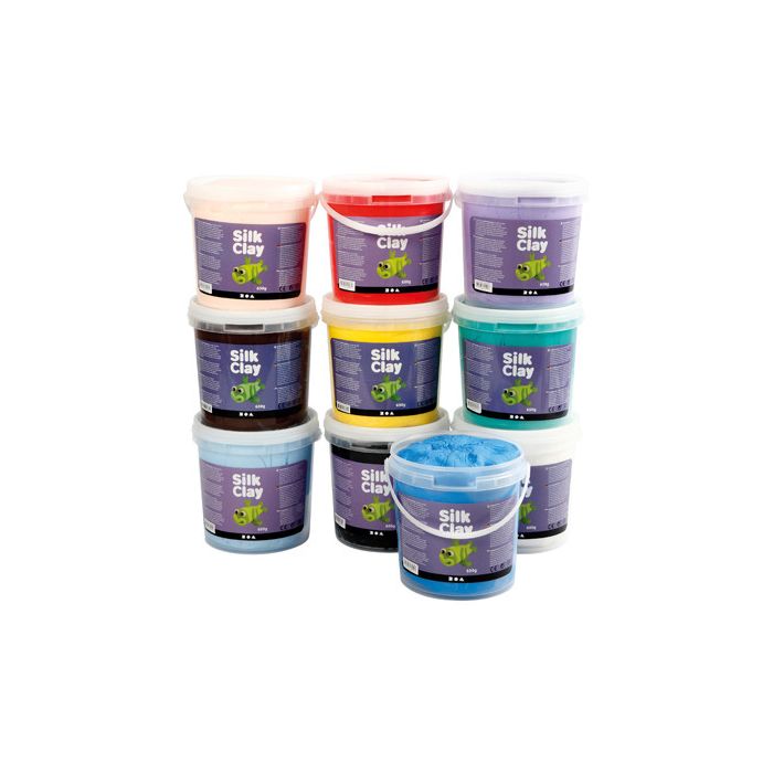 Self-hardening, pliable, soft and lightweight modelling compound, which retains its soft and rubber-like texture when dry - Pack with 10 buckets each of 650g - Assorted colours - Pack 10