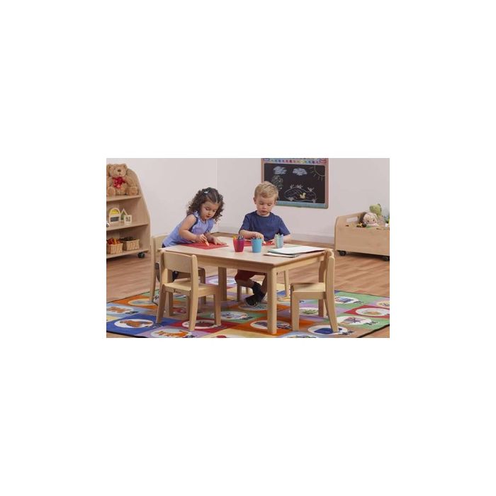 High quality, easy-clean table and chair sets with rounded corners and edges to help prevent accidents. The table has a solid beech frame and legs for stability, plus a maple melamine surface with a protective clear finish. The chairs are stackable for quick and easy storage. Chairs are delivered fully assembled, tables are delivered part assembled. 5 year manufacturer's warranty. Delivery of this product will be to kerbside only. You will need to arrange for the product to be moved to its final location.