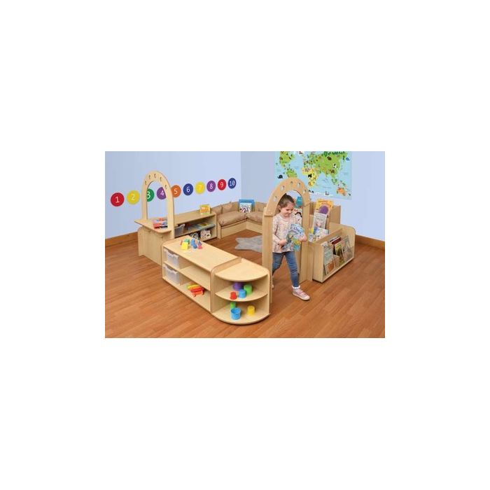 Create the perfect reading corner in an early years setting. Supplied in flat pack form with easy to follow assembly instructions. Comes with joining bolts provided for extra stability. 15mm Covered MDF - ISO 22196 certified antibacterial. Includes: Perspex display units x2, Corner seating, Archway, Counter Arch, Tray storage units x2, Corner shelf finisher.