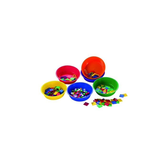 Set of plastic coloured bowls, ideal for sorting and counting activities. Size: 40mm x 150mm dia. Set 6