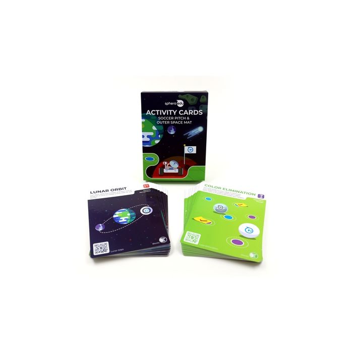 Including 3 packs of activity cards featuring 20 fun coding challenges and games.To be used with Sphero Code Mat Space/Soccer mat.