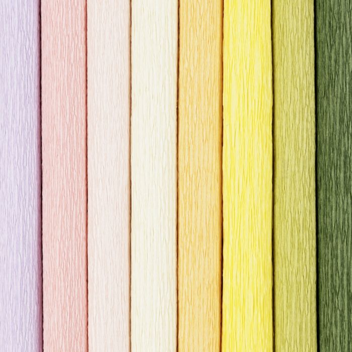 Crepe Paper in assorted pastel colours ideal for creating flowers, collages, and most crafting projects. 25 x 60cm. 8 sheets.