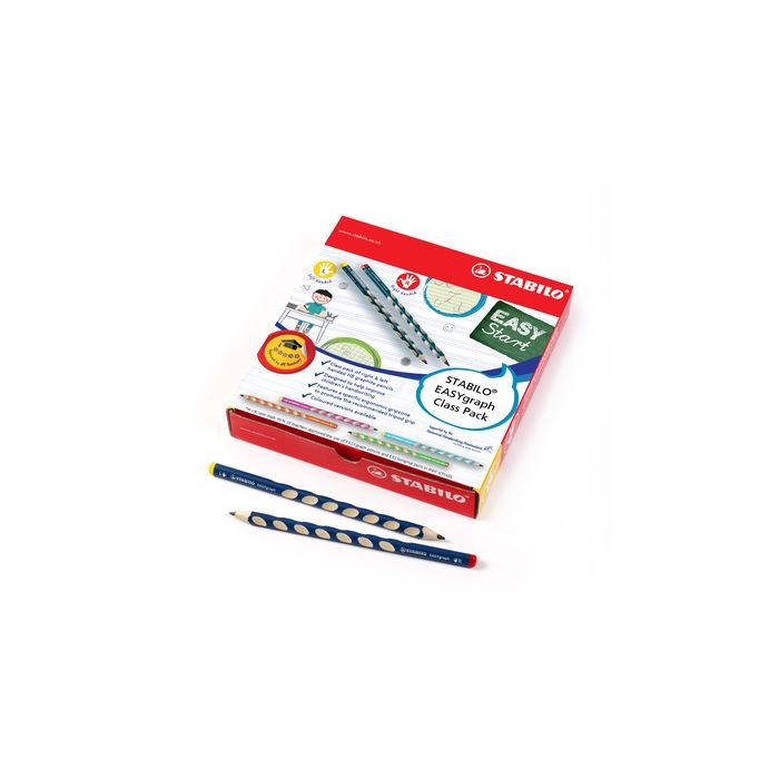 The first ergonomic HB graphite pencil that promotes the recommended tripod grip in both right and left handers. Designed to help children learn to write in comfort and ease and ideal to help improve handwriting. Triangular design and non-slip grip moulds. Ideal for Pre-School and Primary. Recommended by the National Handwriting Association. Wood from responsibly managed forests. 5 shaft colours. Colour-coded 40 Right and 8 Left Handed Pencils. Pack of 48.
