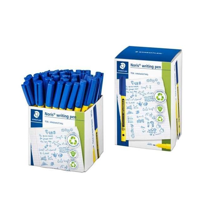Handwriting pen with moulded grip zone for comfort and extra control. Ventilated cap for safety. Dry Safe ink - Pen can be left uncapped for days without drying up. Pocket clip on cap also prevents pen rolling on, or off the desk. 2500m writing life. 0.6mm point. Blue ink. Tub of 50.