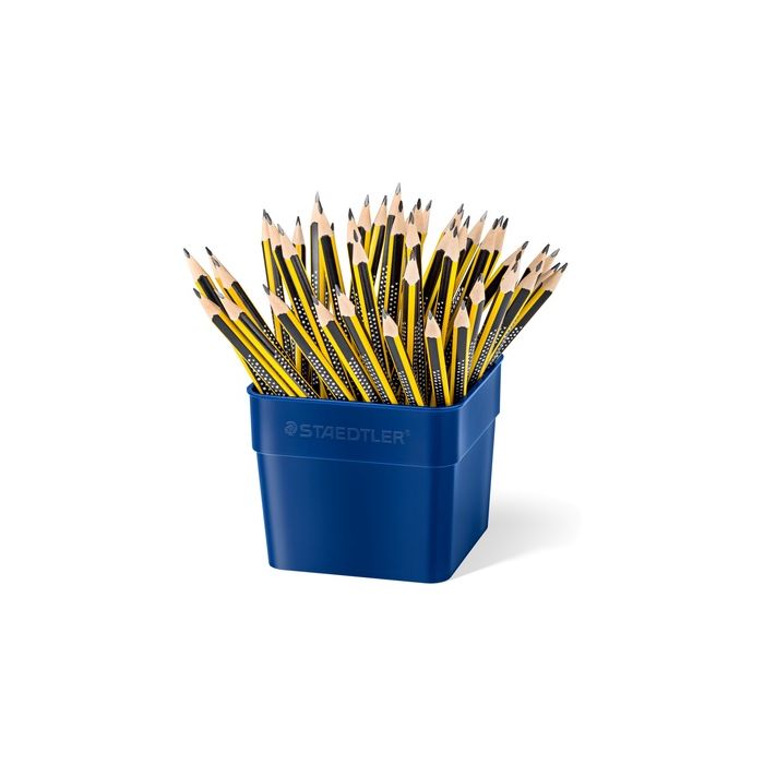 High quality graphite pencils in a triangular shape which encourages correct grip for fatigue free writing. Produced with upcycled wood chips. Soft non-slip surface and high break resistance for writing, drawing and sketching. Attractive stars and stripes design. Wood content from PEFC-certified, sustainably managed forests. HB. Tub 48.