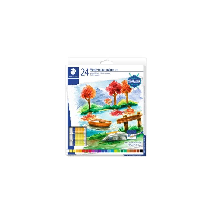 Perfect for fine art and craft applications, highly pigmented paints produce brilliant colours. For use on watercolour paper or board. Brushes clean up easily with water. 12ml paint tubes. Assorted colours. 24 Pack.