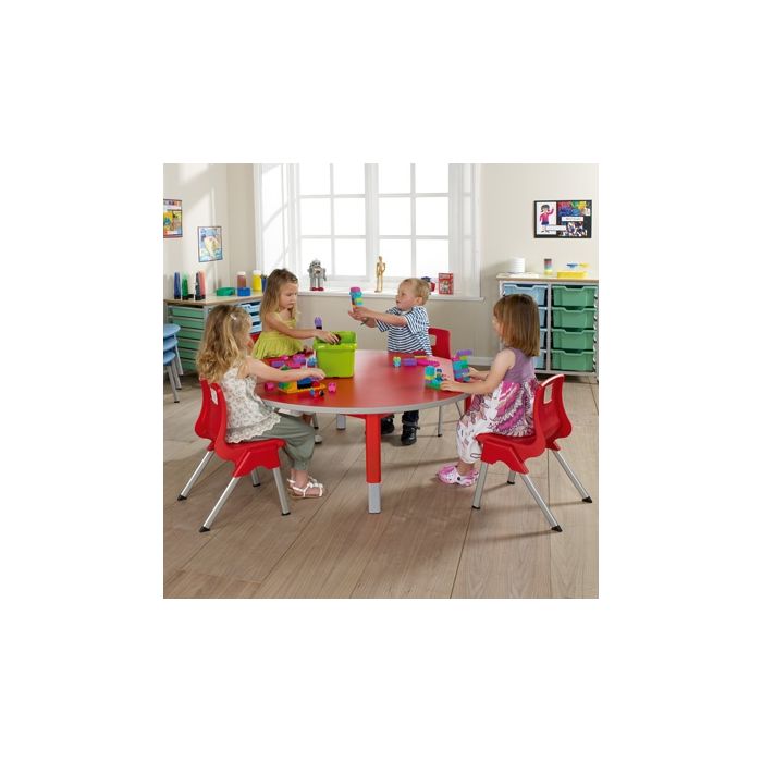 Both strong and stylish, this product is guaranteed to be an essential part of the classroom for years to come. The high pressure laminated top is designed to withstand classroom use making it durable, whilst the sub frame is fully-welded for additional strength and stability. The Duraform edge is supplied in a light grey finish Height adjustable with Allen key to any of these 5 positions: Size 1 = 400mmH (2-3yrs) Size 2 = 460mmH (3-4yrs) Size 3 = 530mmH (4-6yrs) Size 4 = 590mmH (6-8yrs) Size 5 = 640mmH (8-11yrs)