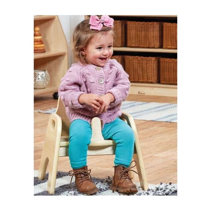 The pommel chair is designed to prevent young children from sliding, allowing them to remain upright whilst seated at a table. Features handy holes in the sides and backrest. Easy-clean and stackable. Comes pre-assembled with 5 year manufacturer's warranty. BS EN 1729 compliant. Seat height: 200mm. Dimensions: W400 x D355 x H445mm Delivery of this product will be to kerbside only. You will need to arrange for the product to be moved to its final location.