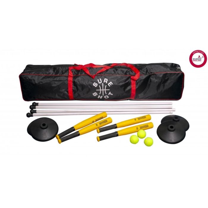 Pack consists of: 4 x Rookie Rounder bats – polypropylene construction for a lighter bat, 3 x Tennis balls – easier to hit and easier to catch, 1 x Set of 4 posts with rubber bases and tops, 1 x Equipment bag