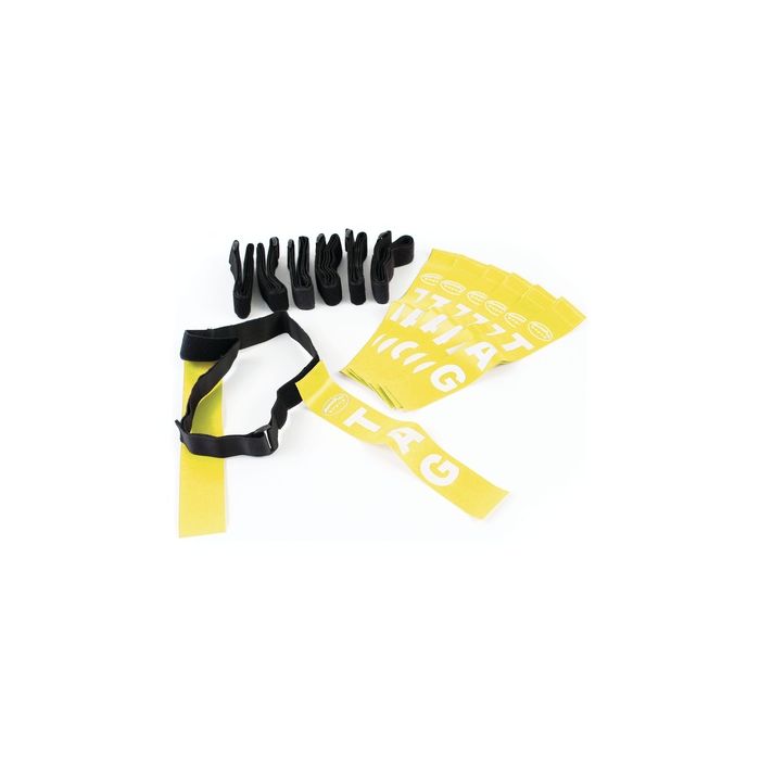 Supplied complete with 2 coloured 'tags' which attach with hook and loop fastening for quick removal. Set of 7. Colour yellow.