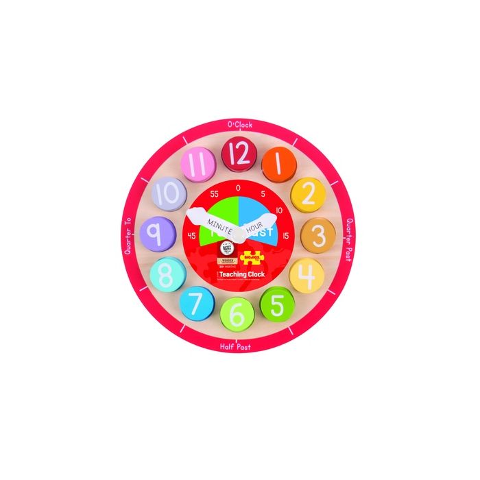 Each piece on the teaching time clock is colour co-ordinated with its base slot to develop recall and recognition skills. There are even handy annotations around the clock to teach children time vocabulary. Size 22.5cm dia.