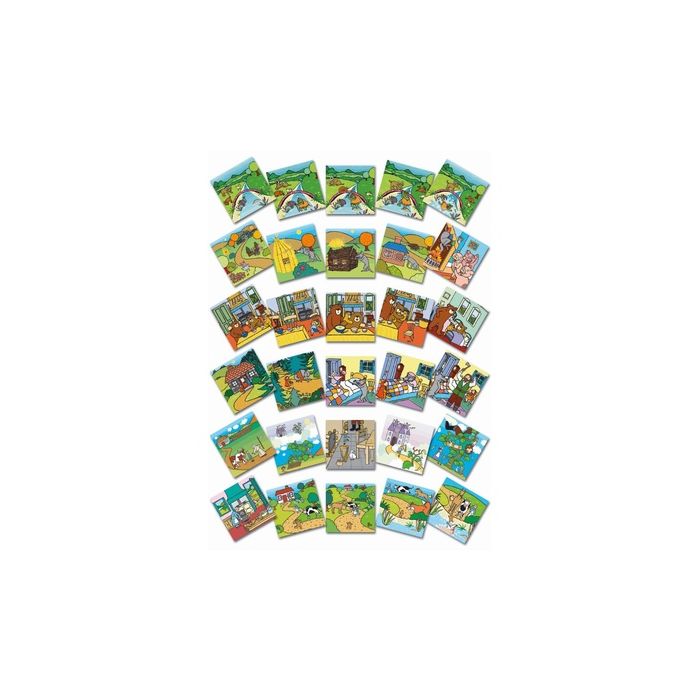 Develop sequencing skills while exploring six popular traditional tales with this colourful card set. Each story has five cards measuring 120 x 120mm. Ideal for group and individual use, this set features The Billy Goats Gruff, The Three Little Pigs, Goldilocks and the Three Bears, Little Red Riding Hood, Jack and the Beanstalk, and The Gingerbread Man. Each pack includes 30 cards.