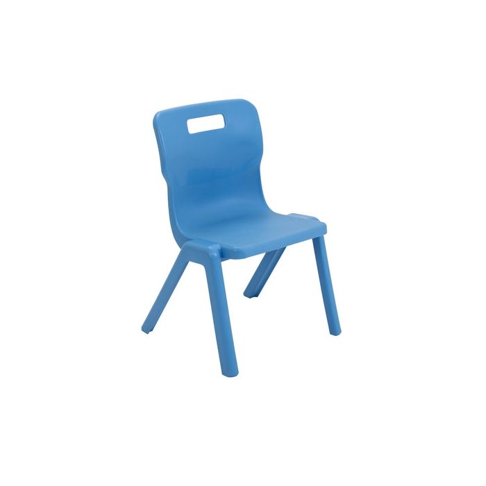 The Titan chair is the only chair to offer your children and schools the best of everything. It encourages good posture for your children through the excellent lumbar support. Good posture not only means your children will be healthier but it also means that they should be more comfortable - and therefore more attentive in class. The ant-tilt feature prevents falls. The one piece design ensures it's maintenance free as well as having no sharp corners and features a carry handle for ease of movement. Stackable up to 15 chairs high ensures you can really make the most of your classroom space, but also makes it perfect for assembly halls. Fully recyclable and designed specifically with sustainability in mind. Provided with a 20-year manufacturer's guarantee. All chairs tested to EN1729 Parts 1 & 2 in the UK. W 363 x D343 x H563mm. Seat Height 310 x Seat Width 275 x Seat Depth 279mm. Weight tolerance 97kg.
