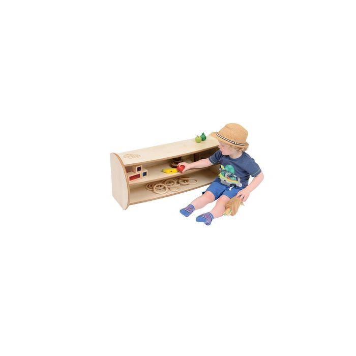 A low-level storage unit ideal for babies and toddlers. Provides easy access to resources and encourages independent play.Two shelves for easy access storage separated by dividers. Designed for use by under 3's. Supplied flat packed with a 10-year manufacturer's warranty. 360 x 805 x 306mm.