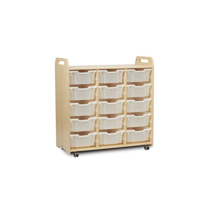Units are made from a premium MDF core with clear lacquered edges. Units are designed with flexible runners to house different depths of trays - maximising storage options and allowing units to be easily reconfigured. The reverse of each unit features a loop nylon Velcro fabric that can be used for display and provides a more tactile surface for young children. Lockable castors are anti-scratch and low-noise. Velcro display surface on reverse. Supplied fully assembled with a 10 year manufacturer's warranty. W1045 x D465 x H1080mm. Delivery of this product will be to kerbside only. You will need to arrange for the product to be moved to its final location.