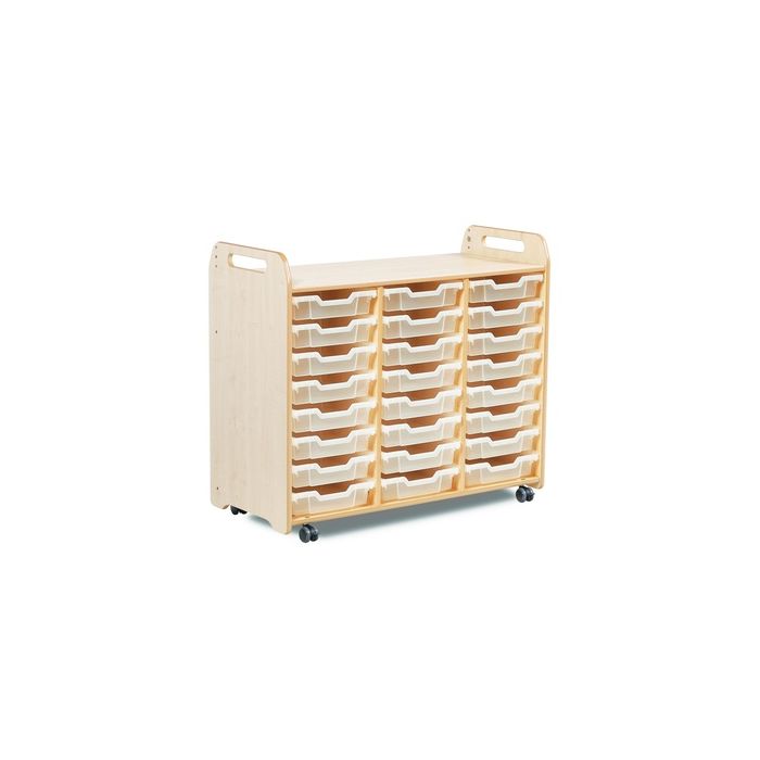 Units are made from a premium MDF core with clear lacquered edges. Units are designed with flexible runners to house different depths of trays - maximising storage options and allowing units to be easily reconfigured. The reverse of each unit features a loop nylon Velcro fabric that can be used for display and provides a more tactile surface for young children. Lockable castors are anti-scratch and low-noise. Velcro display surface on reverse. Supplied fully assembled with a 10 year manufacturer's warranty. W1045 x D465 x H900mm. Delivery of this product will be to kerbside only. You will need to arrange for the product to be moved to its final location.