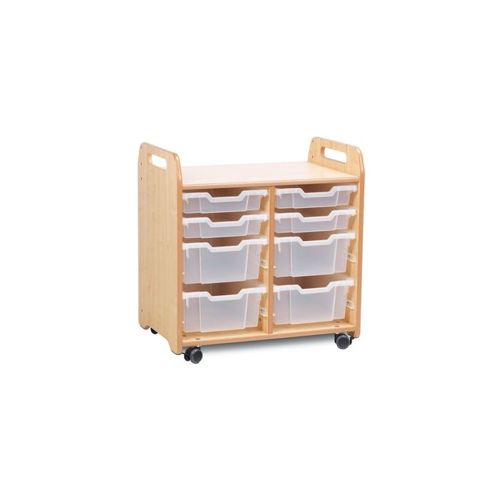 These tray storage units are made from a premium MDF core with clear lacquered edges. Units are designed with flexible runners to house different depths of trays, maximising storage options and allowing units to be easily reconfigured. The reverse of each unit features a loop nylon Velcro fabric that can be used for display and provides a more tactile surface for young children. Lockable castors are anti-scratch and low-noise. Supplied fully assembled with a 10 year manufacturer's warranty. ace for young children. W700 x D465 x H730mm. Delivery of this product will be to kerbside only. You will need to arrange for the product to be moved to its final location.
