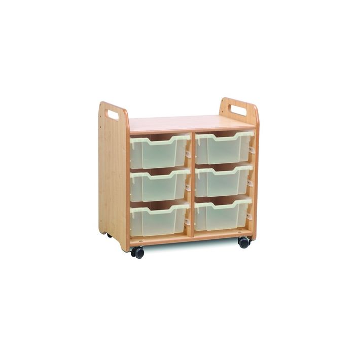 These tray storage units are made from a premium MDF core with clear lacquered edges. Units are designed with flexible runners to house different depths of trays, maximising storage options and allowing units to be easily reconfigured. The reverse of each unit features a loop nylon Velcro fabric that can be used for display and provides a more tactile surface for young children. Lockable castors are anti-scratch and low-noise. Supplied fully assembled with a 10 year manufacturer's warranty. ace for young children. W700 x D465 x H730mm. Delivery of this product will be to kerbside only. You will need to arrange for the product to be moved to its final location.
