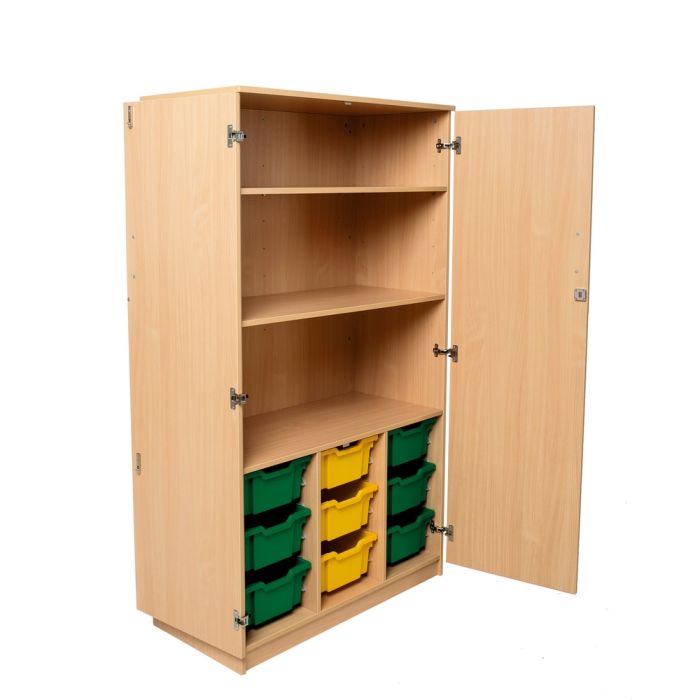 Two Shelf Cupboard Beech 9 Deep Green Trays