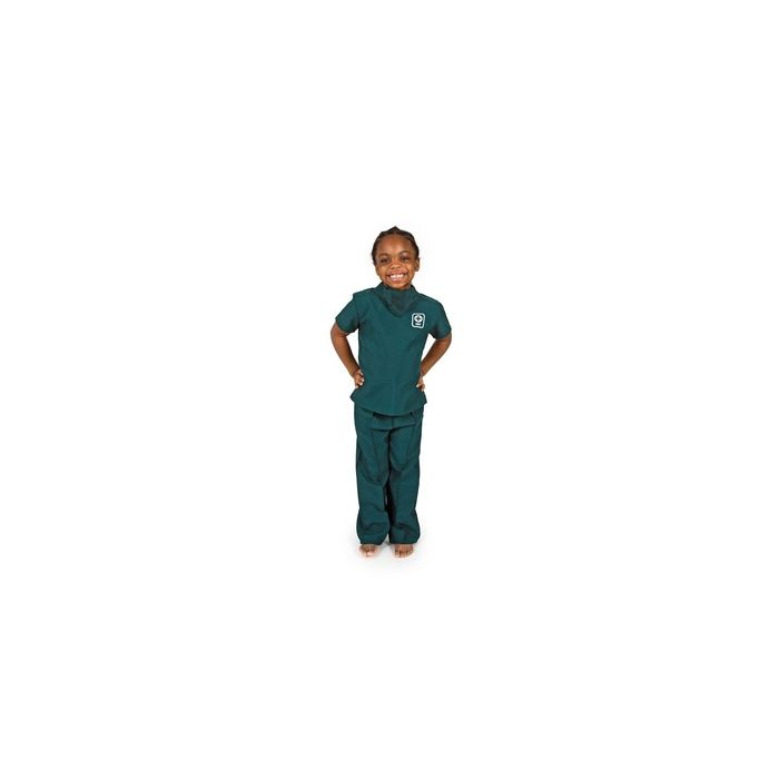 Encourage imaginative play and early learning with the Vet role play outfit for age 3-5 years. This three-piece costume includes a realistic tunic with a printed 'VET' graphic, bi-stretch face mask with adjustable Velcro strap, and professional-style trousers. Perfect for preschool and nursery settings, it supports animal care role play and enhances social development. Machine washable for easy maintenance, it is an ideal addition to any dress-up collection.