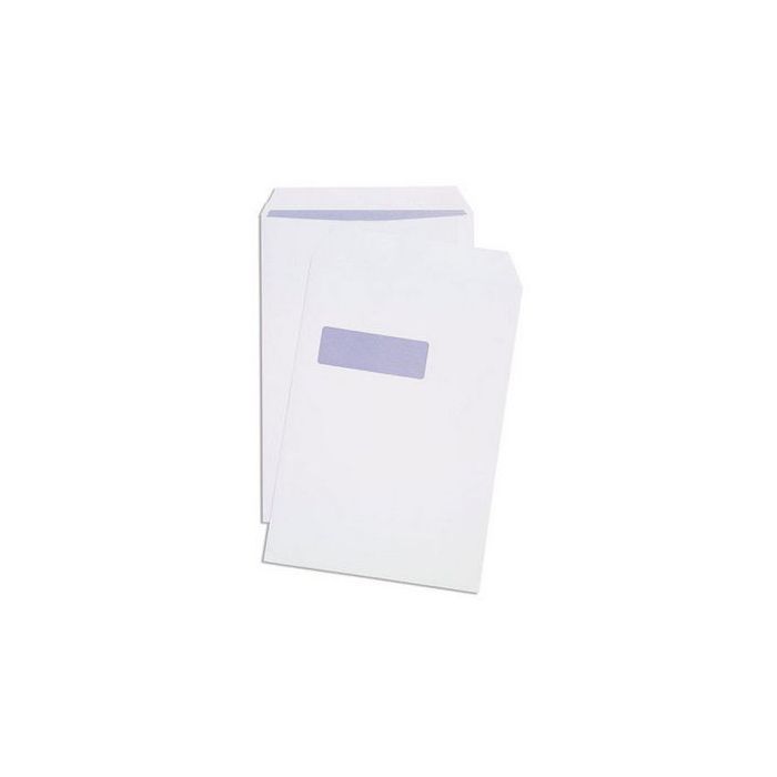 White, window, window position 213mm up, 24mm from left, window size 45 x 105mm. Pocket style (seals on the shorter edge), self seal, 90gsm. C4 (324 x 229mm). Box 250