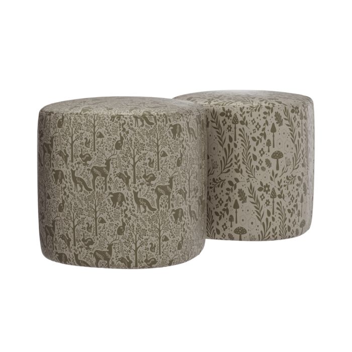 Bring the outdoors in with this gorgeous set of 2 large bean pods in our Wild Wood range. With beautiful, nature inspired patterns, they will make a cosy addition to your seating area. The set comes with one of each of our Animal and Toadstool prints. Our Animal Print is a beautiful and engaging woodland print inspired by Scandinavian folk art. Children can point out recognisable woodland animals, such as deer, squirrels, or foxes. The Toadstool Print has been designed to compliment our Woodland Animal print, the Toadstool design combines delicate ferns and florals with whimsical toadstools. Perfect to encourage children to develop an interest in wildlife and the great outdoors, while creating a calm environment in your space. They are made from super soft fabric and are easy to move around your setting. Wipe clean with a damp cloth. Suitable for use by children aged 2+ years. H400 x Dia.450mm.