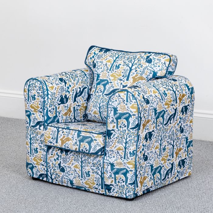 Part of the KCS Wild Wood Furniture Range. This chair has been designed for children and is perfect for home corners, reading areas or a place for children to relax. Our Animal Print is a beautiful and engaging woodland print inspired by Scandinavian folk art. Children can point out recognisable woodland animals, such as deer, squirrels, or foxes. Perfect to encourage children to develop an interest in wildlife and the great outdoors, while creating a calm environment in your space. The covers are removeable and can be washed up to 30 degrees. Simply take off and put back on again. H660 x W640 x D520 x SH300mm.