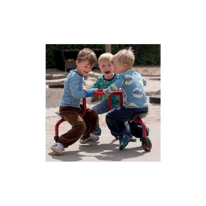 Winther's Viking Challenge range certainly offers children something different to master. A unique and fun carousel that challenges the children's coordination skills and ability to be a team player - as the wheels can take them in any direction. The children could be set a task by their teacher to "hit" a certain point on the ground, or they could simply navigate to their own favourite spot. Great fun for all and a unique experience. Effective rust protection and impact resistant powder coating. The designs have maximum safety built in and include non-slip pedals, rounded off edges and safety handlebar grips. Delivered fully assembled. 3 Year Warranty on Frame and Fork. Suitable for Ages 2 - 5 years. Seat Height 310mm. Upper Diameter 430mm. H520 x D1000mm.
