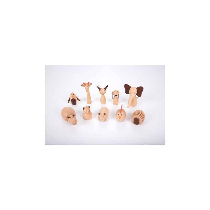 A beautifully made set of solid beechwood animals from around the world, with simple printed features and faux leather detailing to add to their charm. Children will love to use them in imaginative play and telling stories, and the animals naturally complement our Woodland Trees and Wooden Community Figures sets.