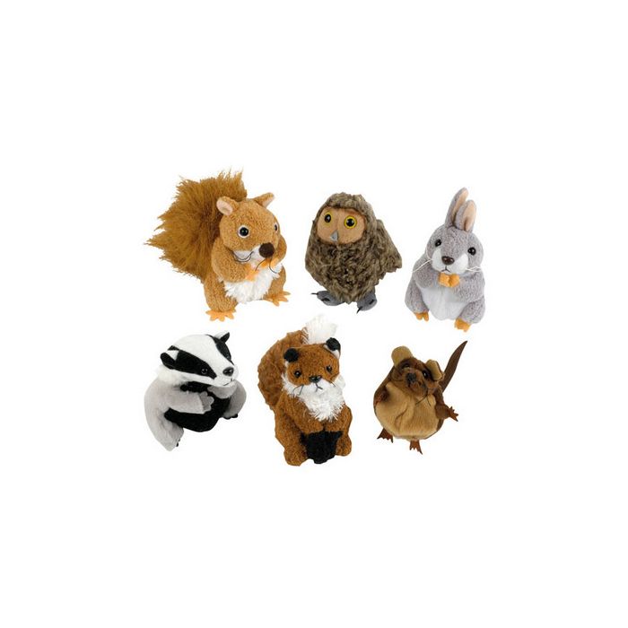Enchanting woodland stories will be brought to life by these delightful finger puppets. Children can create their own stories or small world set ups with the puppets, engaging their imaginations and building their vocabularies. Includes 1 each of: brown bat, brown mouse, owl, fox, grey rabbit, red squirrel and badger (Contents may vary slightly). Sizes range from 110-120mm. Set of 6. Age 12 months+