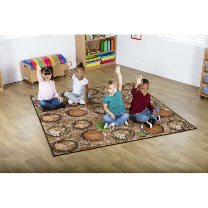 An innovative woodland themed carpet with realistic designs to fire curiosity and imagination and bring the outdoors in to the classroom environment. Featuring stunning high quality digital print, this double sided carpet offers versatility and great value for money. One side features tree stump placements which can also be used as stepping stones where as side 2 shows realistic minibeasts and foliage for fun, imaginative play. Supplied with easy to remove, non slip backing. 200 x 200cm. Delivery of this product will be to kerbside only. You will need to arrange for the product to be moved to its final location.
