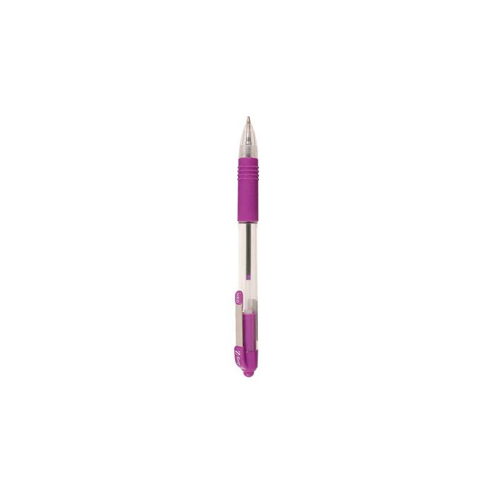Write quickly and clearly with these retractable ballpoint pens. With a medium 1.0mm tip which writes a 0.7mm line width. Transparent barrel to monitor ink levels. Silky smooth easy glide ink for a skip-less writing experience. Soft cushioned rubber grip which is latex free. Metal pocket clip. Violet. Pack of 12.